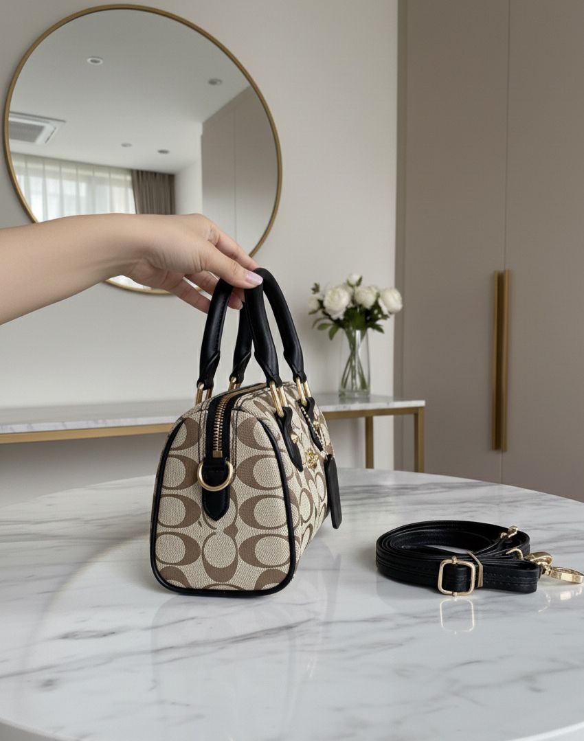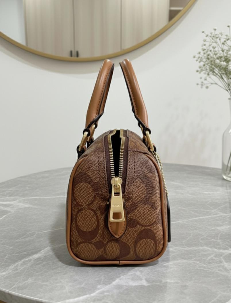 Le sac Coach Rowan Satchel incarne l’élégance intemporelle et la praticité au quotidien. Conçu en cuir de qualité supérieure, il se distingue par sa forme structurée, son logo emblématique Coach et ses finitions raffinées. Grâce à sa bandoulière ajustable et ses poignées supérieures, il peut se porter à la main ou en croisé pour un style chic et moderne.
