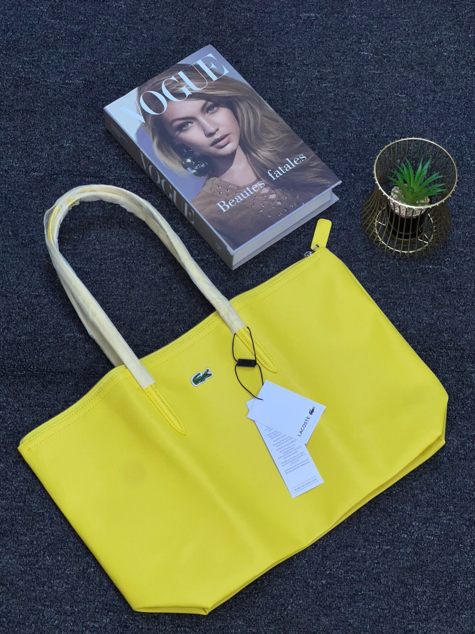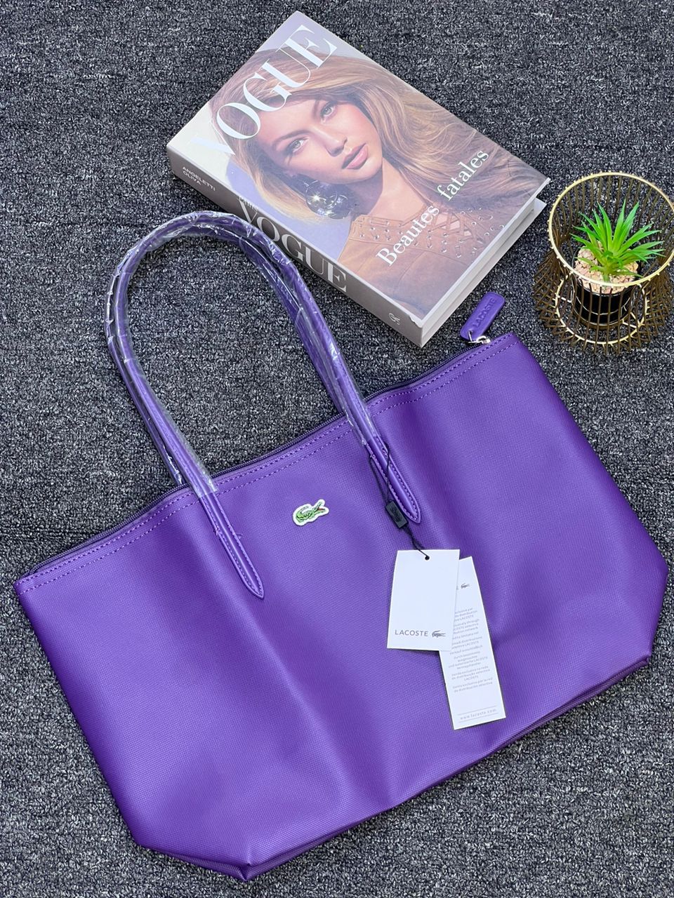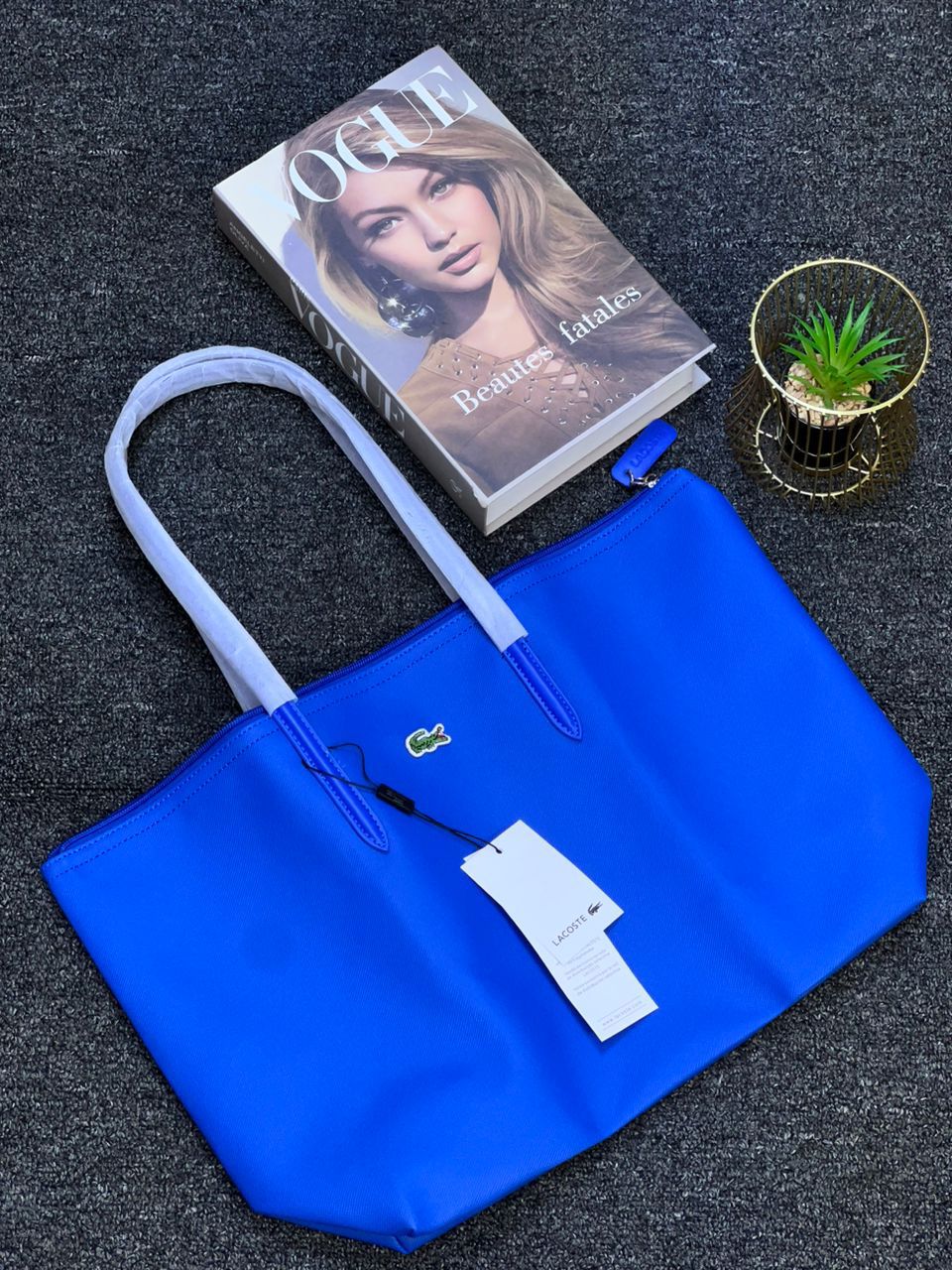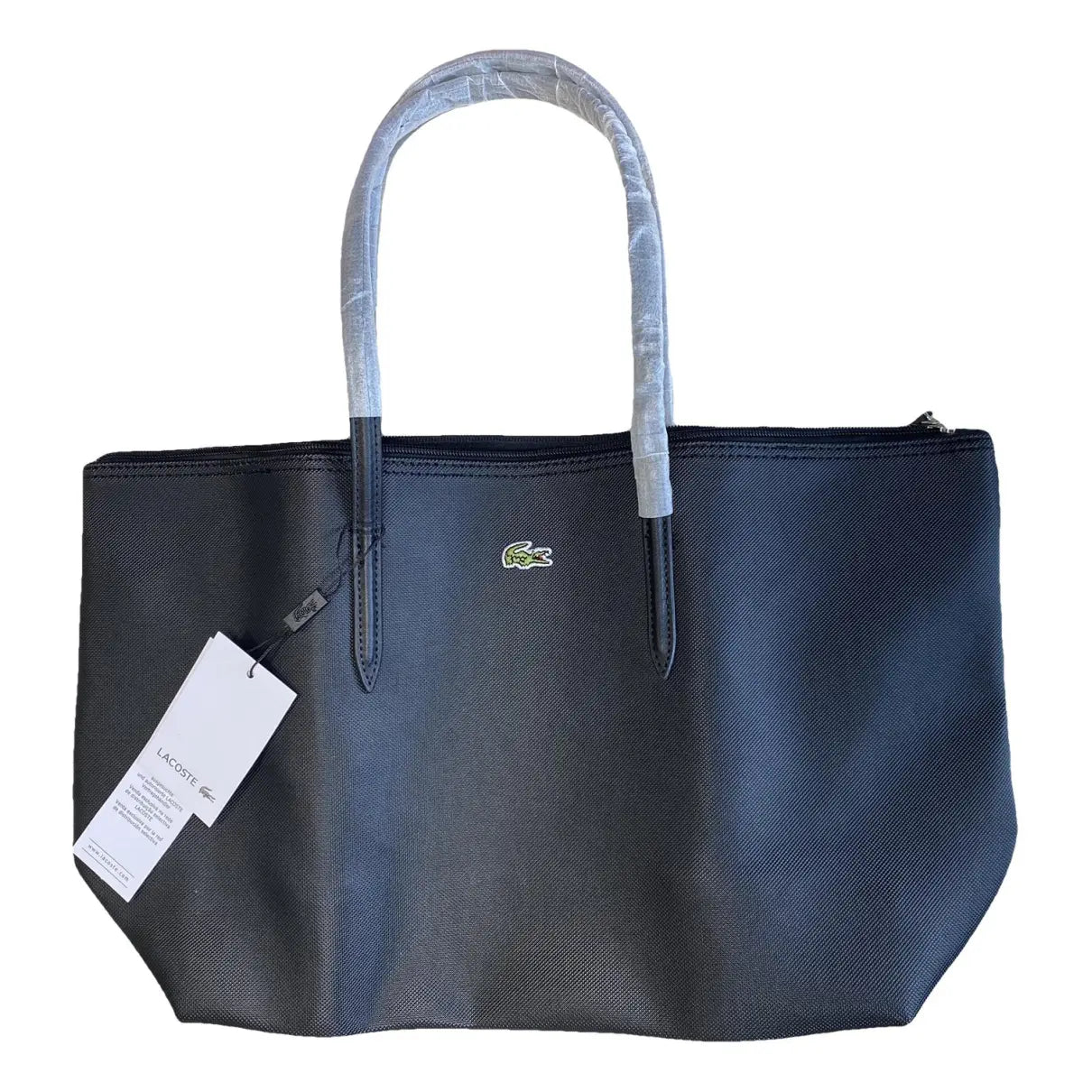 Joli et pratique ce sac Lacoste pourra vous accompagner en ville, au lycée ou à la plage cet été. Reçu en double à noel, je me sers du même sac du coup pour transporter mon pc portable, il est en PVC donc solide et étanche. Il mesure 45cm de large et 30cm de haut. Comme il n’a jamais été utilisé il a ses protections d’origine et présenté dans son emballage plastique Lacoste… idéal donc pour un cadeau